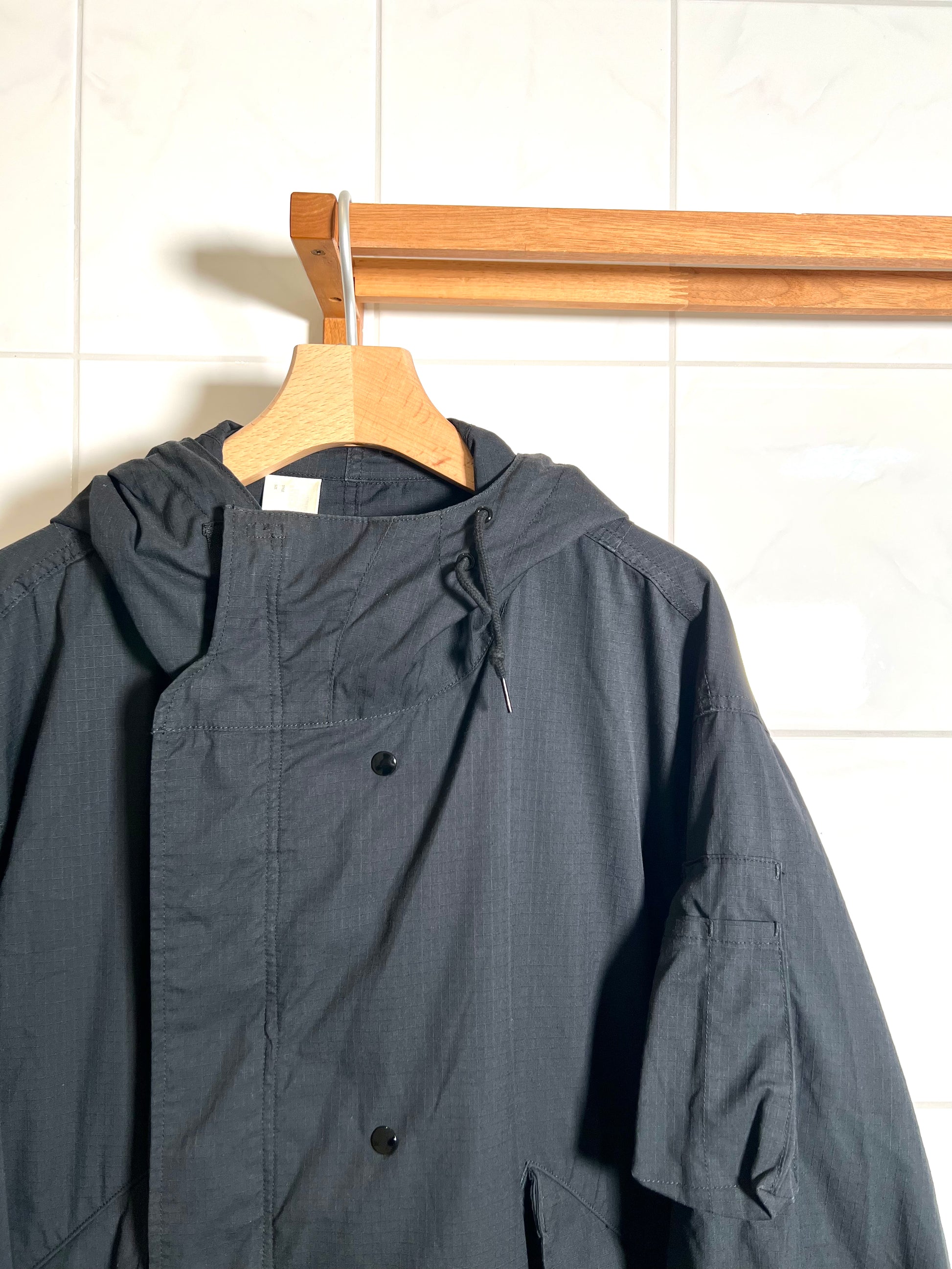 A lightweight ripstop coat from Japanese brand N.HOOLLYWOOD, merging military precision with modern tailoring.